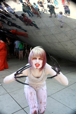 This was apparently an actual, regular, Flash Mob. A group called "Move It" came up to The Bean and did a dance to "Move It" from Madagascar. They didn't seem to have been overly prepared or rehearsed, since everyone seemed to be following the two girls on the right in sunglasses and not really moving as a choreographed group. It apparently had something to do with getting up off the couch and exercising, but honestly, they never really did explain who they were or what their point was. It's possible that the amassing of 2000 zombies had them slightly stunned.